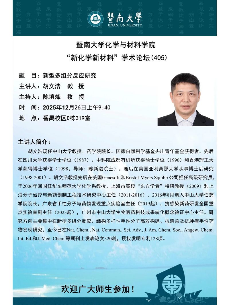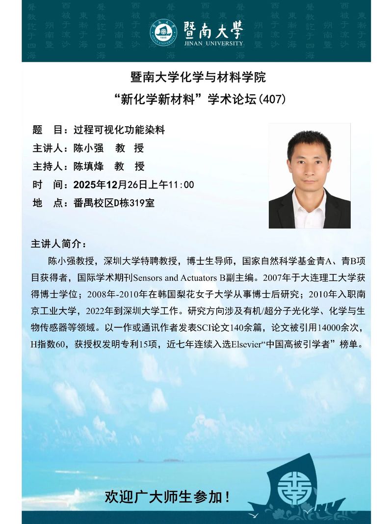 Copyright © 版权所有:©暨南大学化学与材料学院 All Rights Reserved. ICP备案号:粤ICP备 12087612号