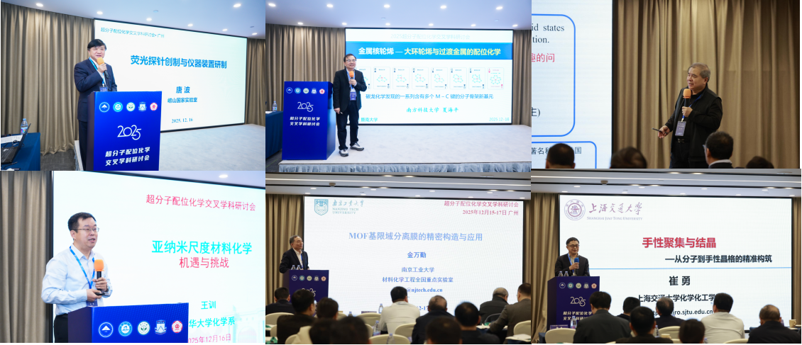 2025年12月15日至17日,超分子配位化学交叉学科研讨会在广州成功召开。本次会议由国家自然科学基金委员会资助,暨南大学化学与材料学院主办,中山大学化学学院、华南师范大学化学学院、广东工业大学轻工化工学院共同协办。会议汇聚了来自全国高校与科研院所的百余位顶尖专家学者,其中包括6位中国科学院院士、70余位国家级人才。与会代表围绕超分子配位化学的前沿进展、创新方法及产业应用等议题展开了深入交流与研讨。