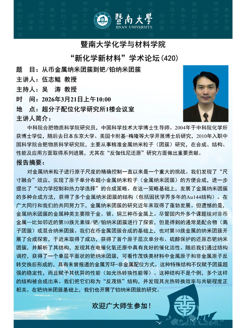 Copyright © 版权所有:©暨南大学化学与材料学院 All Rights Reserved. ICP备案号:粤ICP备 12087612号